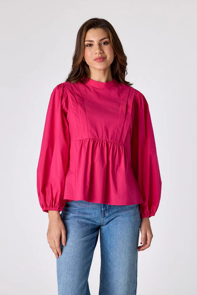 JOANNA WOVEN PLEATED TOP HOT PINK