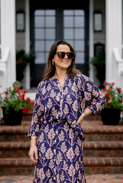 MARGOT TOP BUTTON FRONT LEAVES NAVY