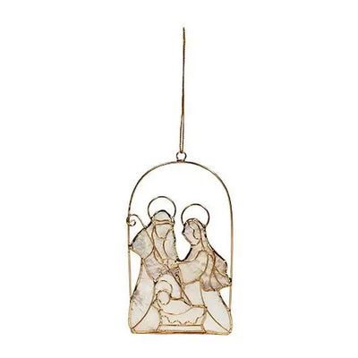 2.5" CAPIZ HOLY FAMILY ORNAMENT W/PEARLS