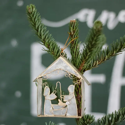 3" CAPIZ NATIVITY HOUSE ORNAMENT