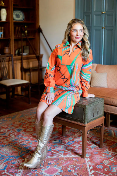 Orange Estate© is inspired by the luxe feel of a vintage, designer scarf. It is the perfect tone of orange to highlight a classic equestrian vibe, with ribbons of pink and green tied in blue. An original through and through.
