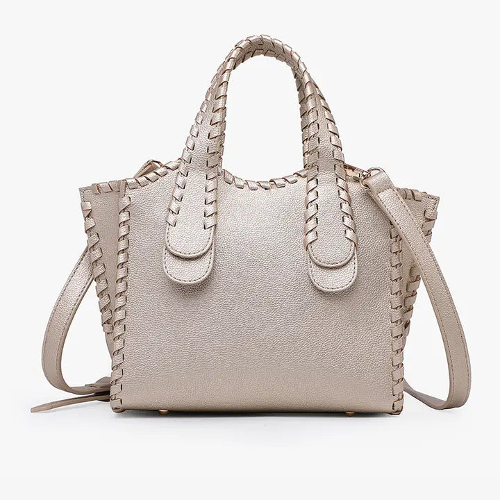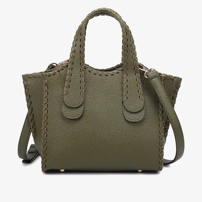 Item Detail: -Whipstitch Trim: Stylish detailing for a chic, textured look. -Dual Handles: Offers a comfortable and classic carrying option. -Top Zip Closure: Keeps your belongings secure and easily accessible. -Adjustable/Removable Crossbody Strap: Wear it as a satchel or crossbody for added versatility.